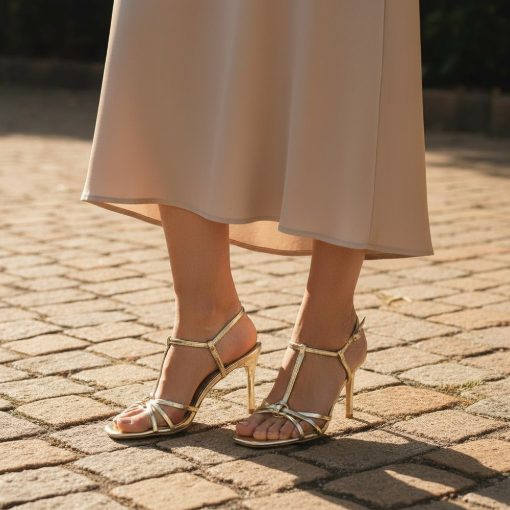 Brillez à chaque pas avec nos sandales à talons dorées, idéales pour les soirées festives et les événements élégants. Leur design délicat et stable épouse le pied tout en sublimant votre silhouette. Le fini doré illumine vos tenues et attire la lumière à chaque mouvement. Confortables et raffinées, ces talons dorés CHICGLAM&I HEELS sont faits pour danser jusqu’au bout de la nuit sans compromis sur le style.
